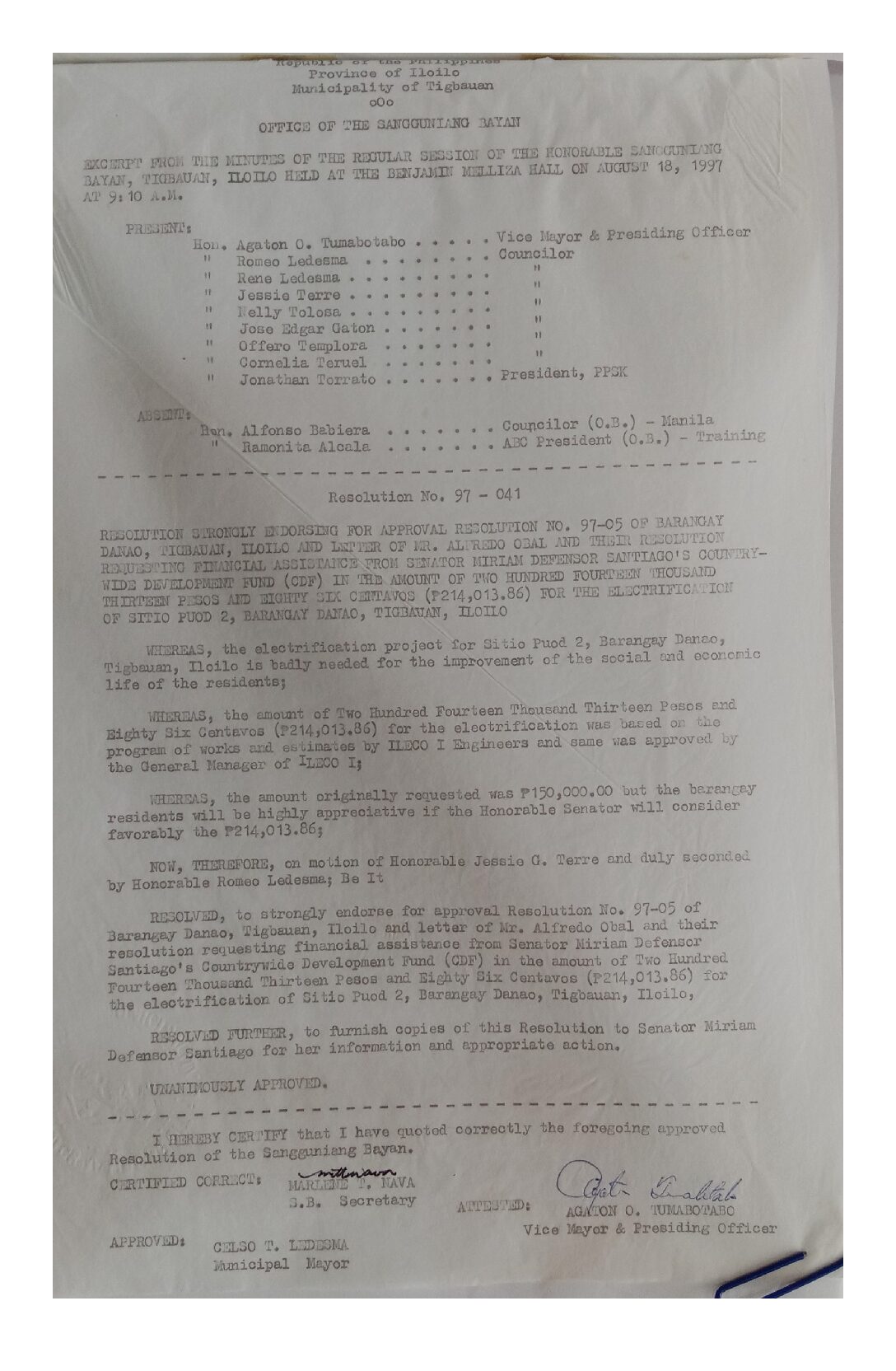 Resolution No. 97-041