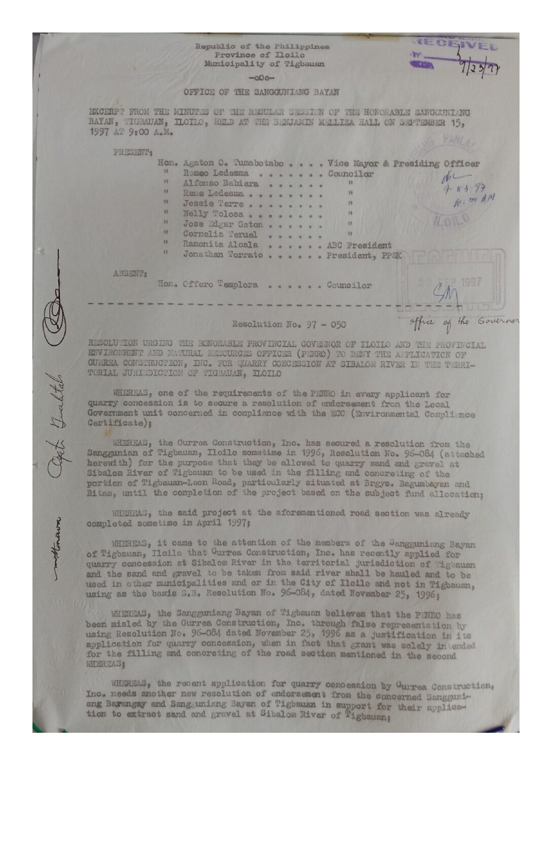 Resolution No. 97-050