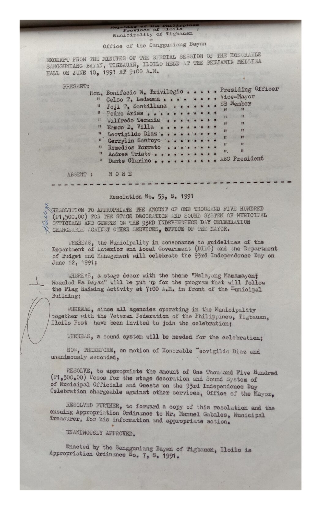 Resolution No. 91-059