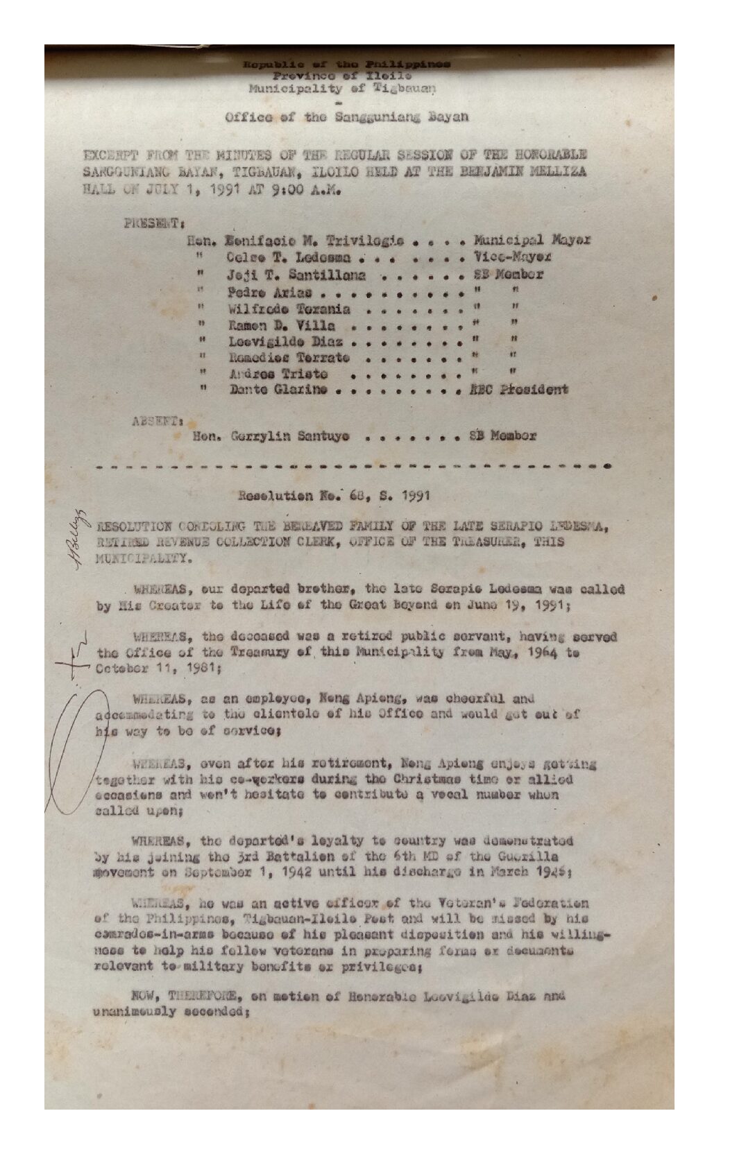 Resolution No. 91-068