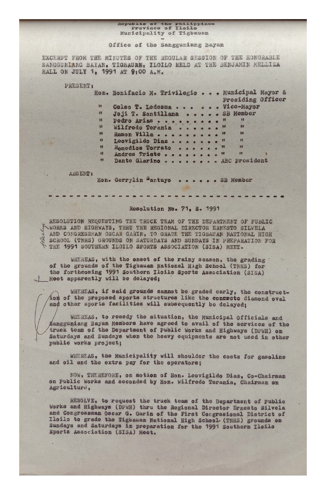 Resolution No. 91-071
