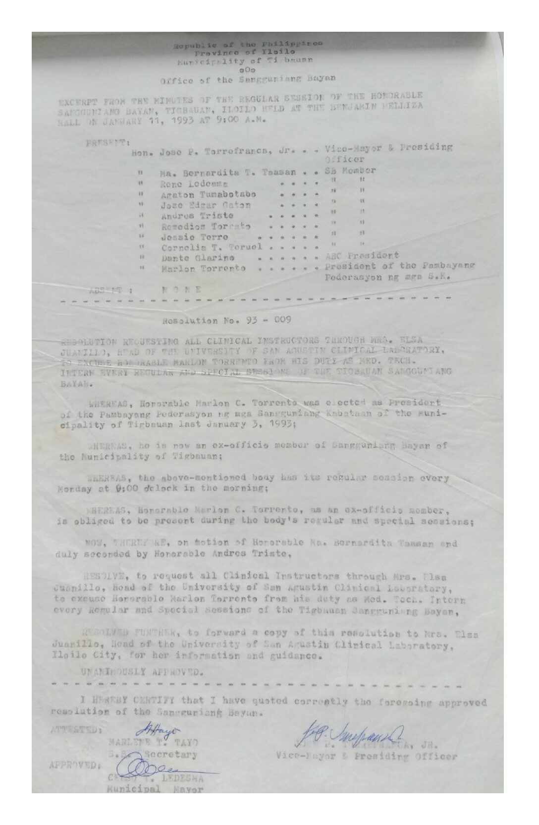 Resolution No. 93-009