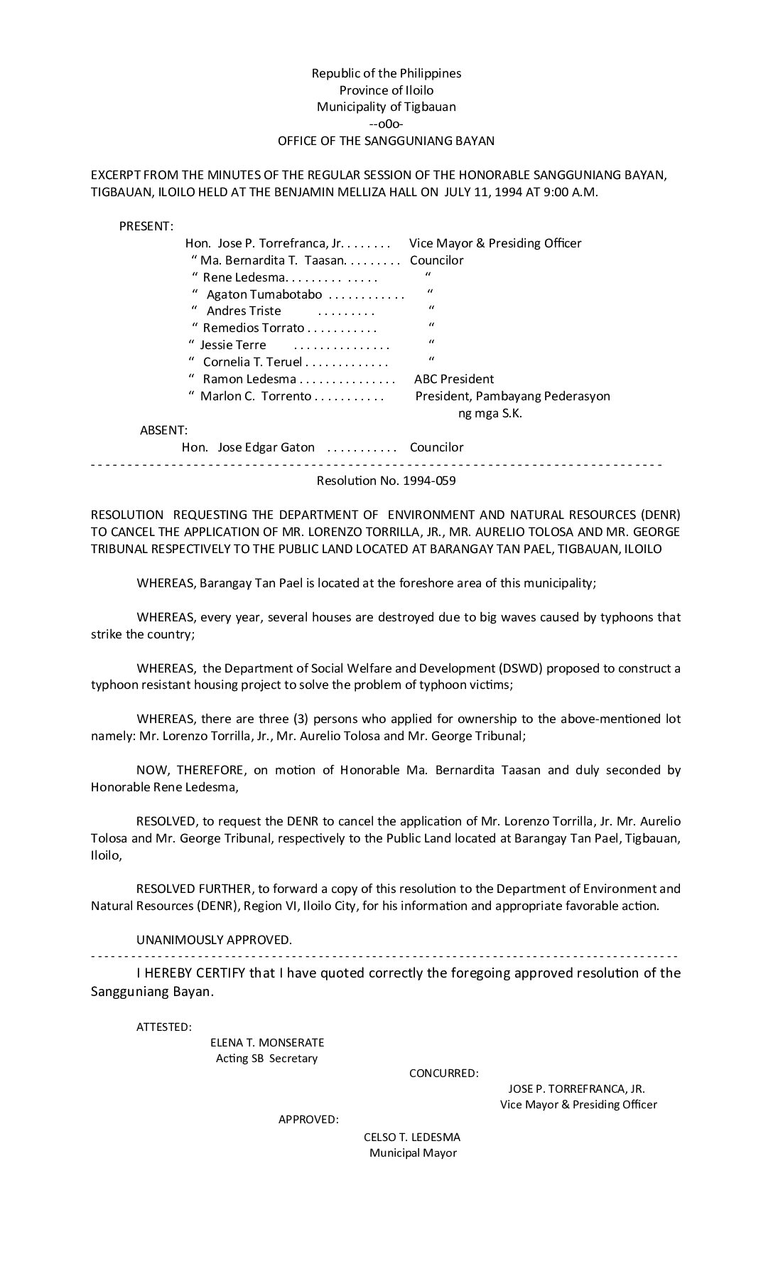 Resolution No. 94-059