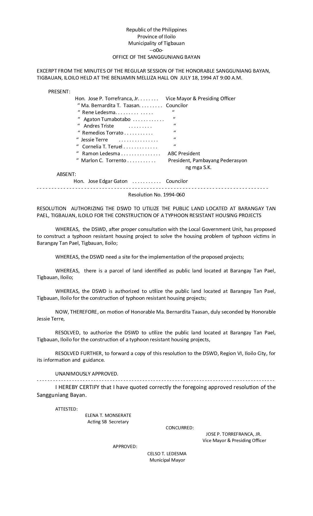 Resolution No. 94-060