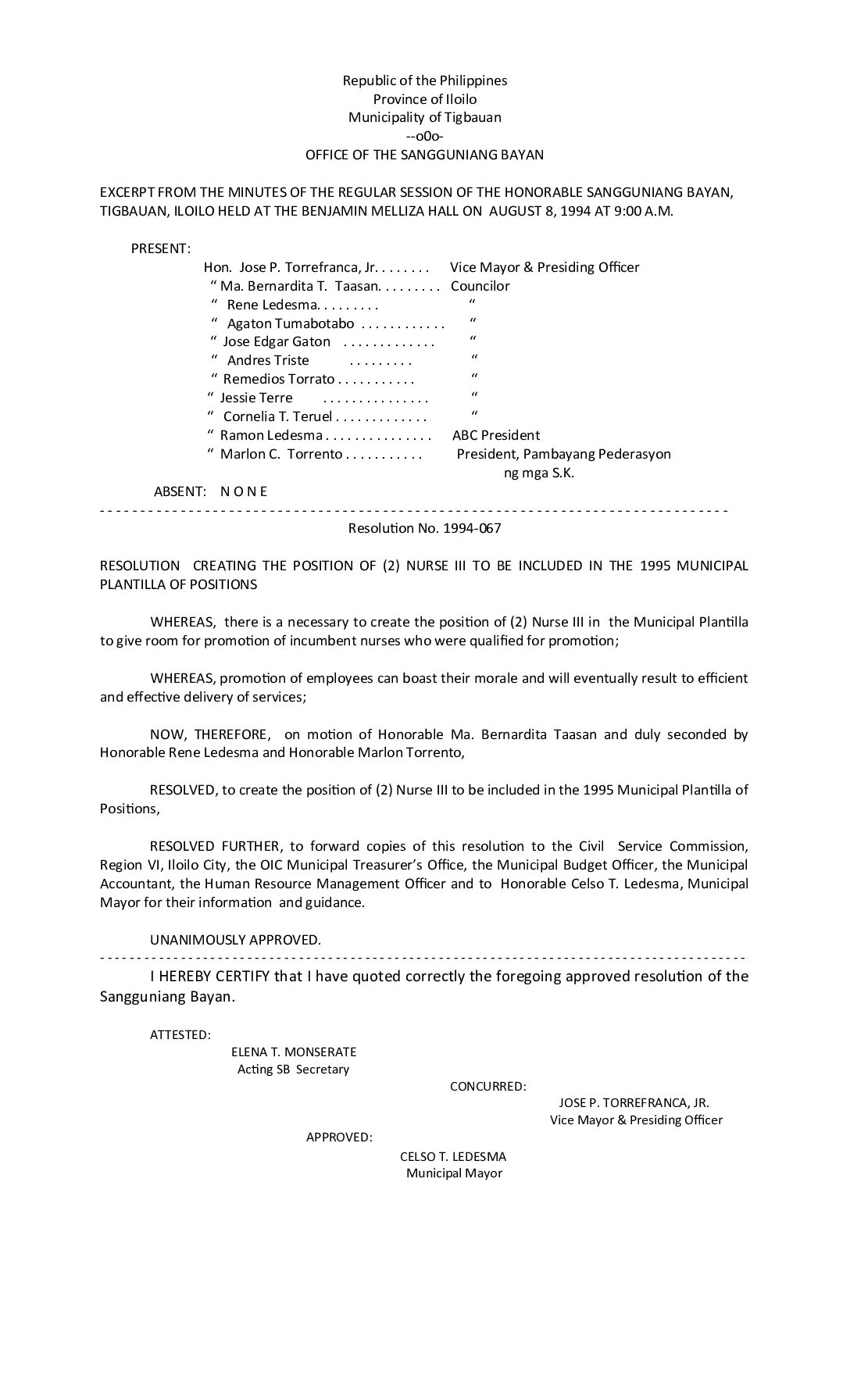 Resolution No. 94-067
