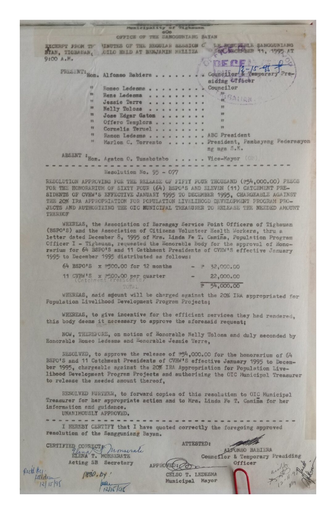 Resolution No. 95-077