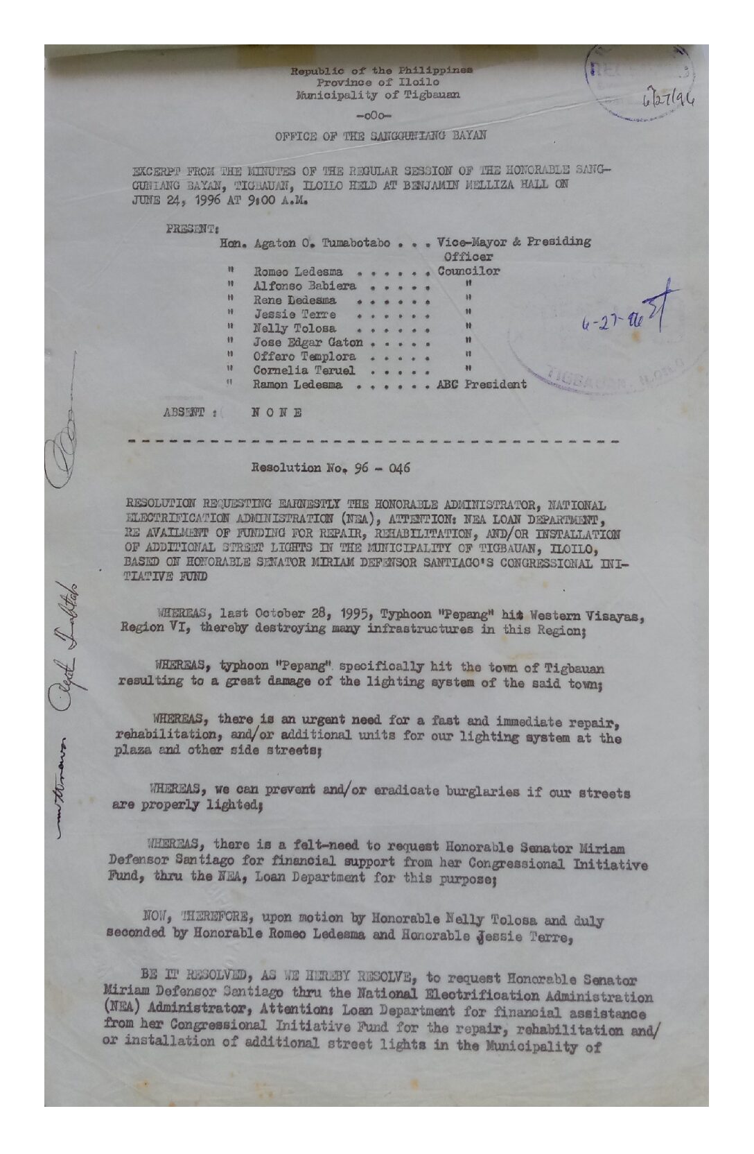 Resolution No. 96-046