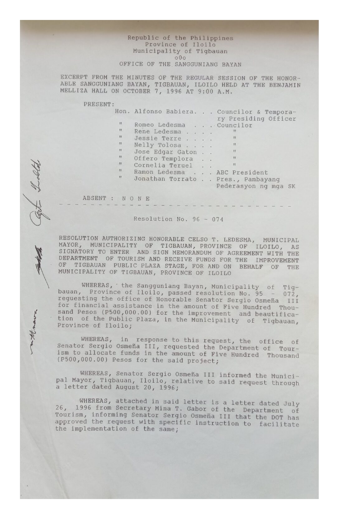 Resolution No. 96-074
