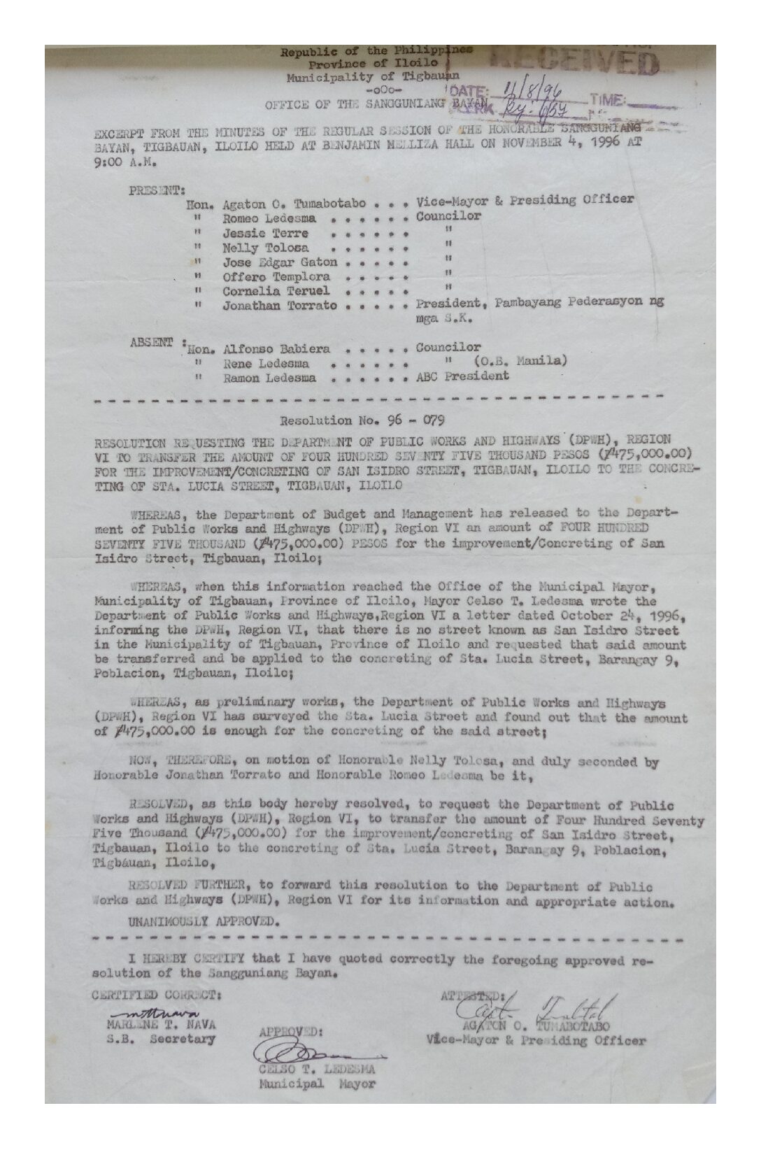 Resolution No. 96-079