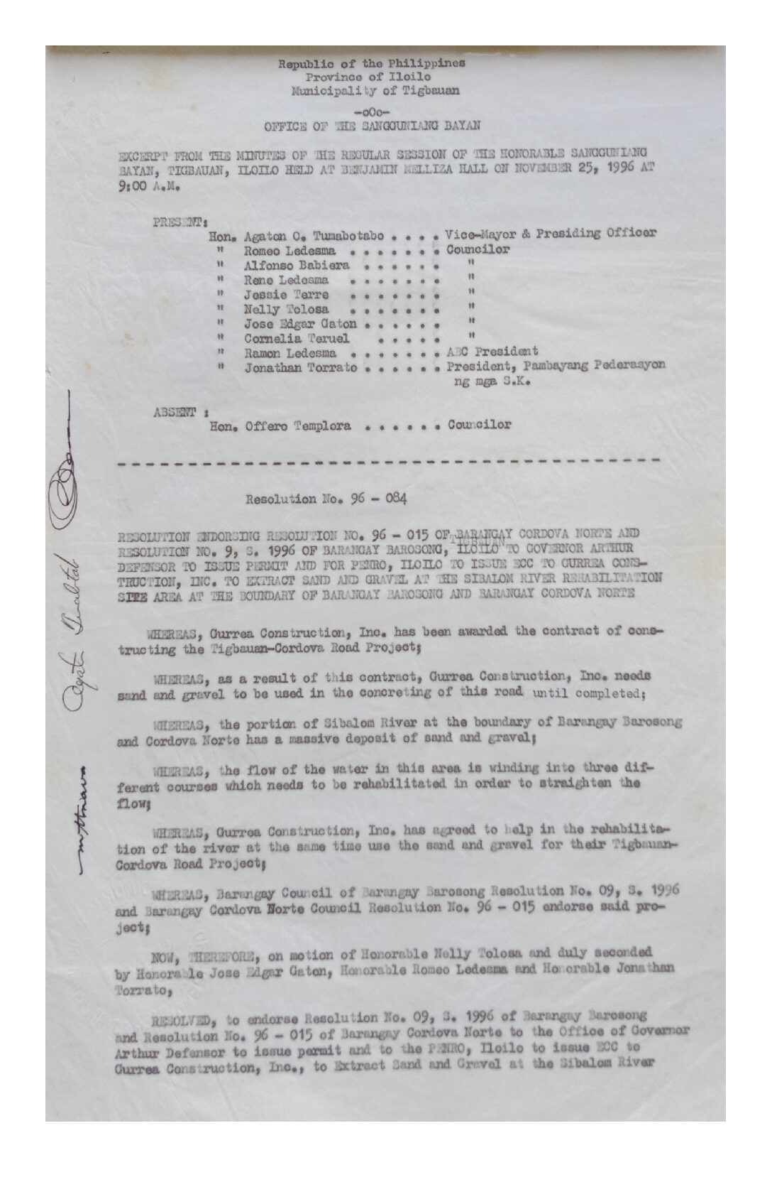 Resolution No. 96-084