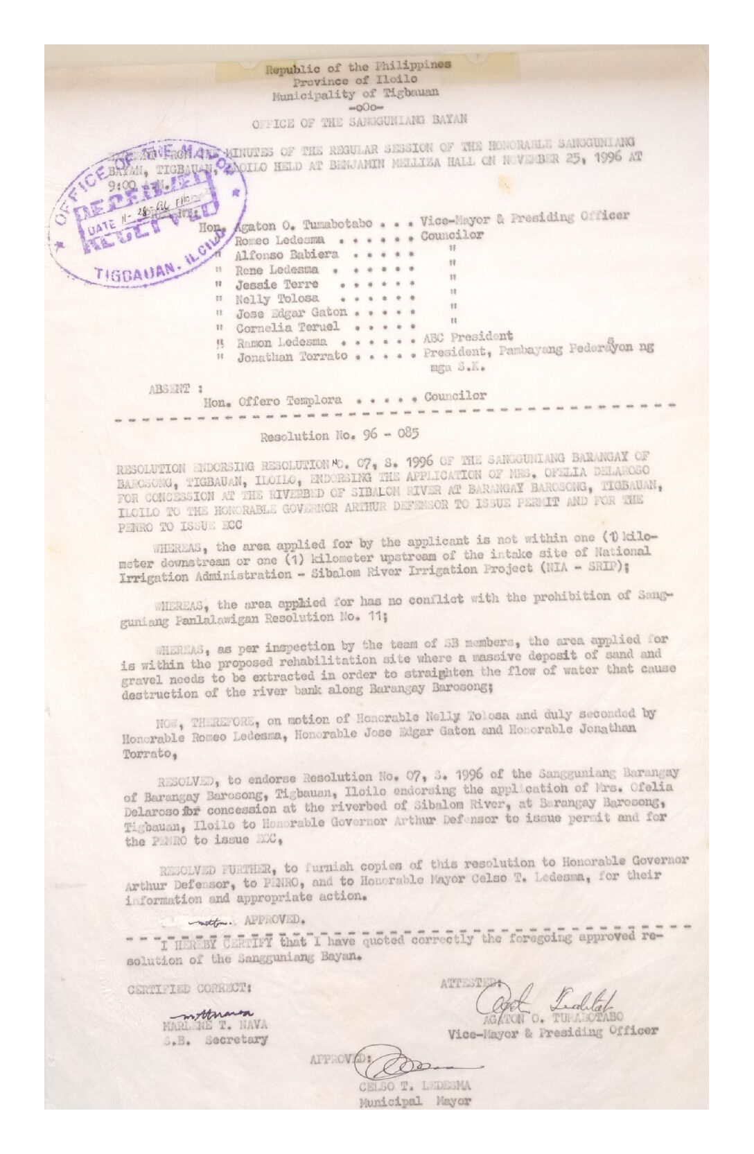 Resolution No. 96-085