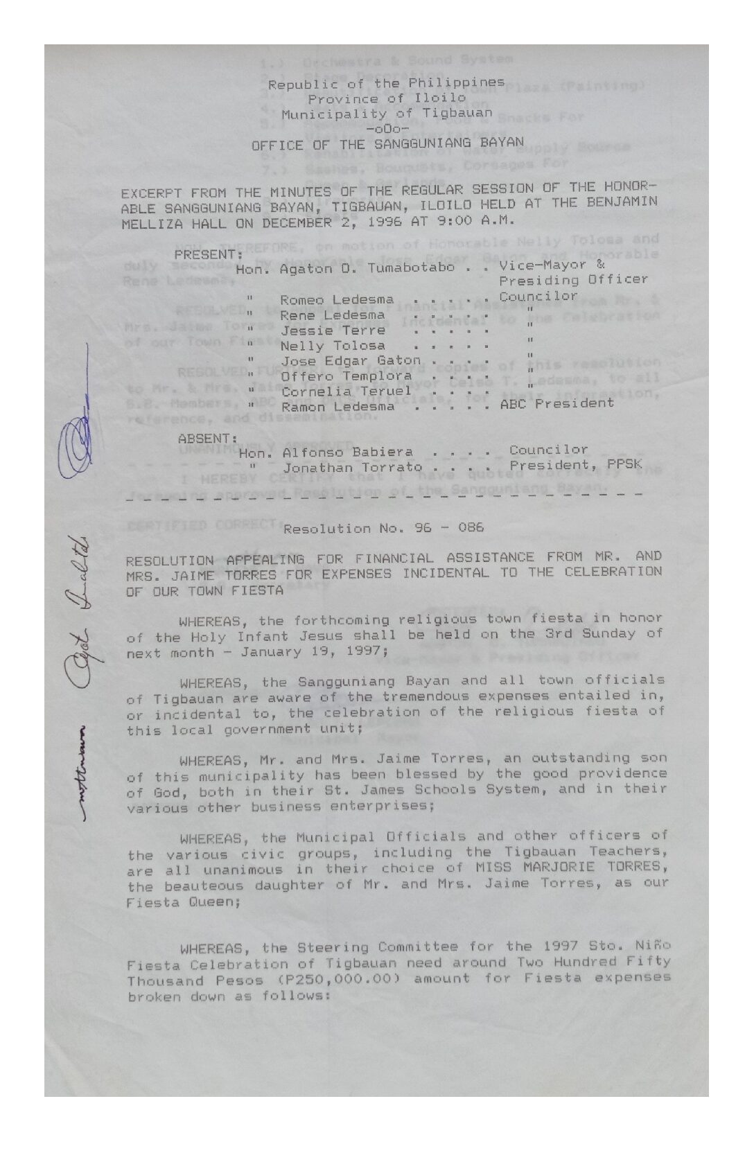 Resolution No. 96-086