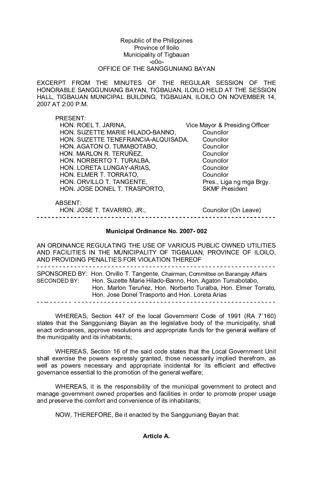 Municipal Ordinance No. 2007-002