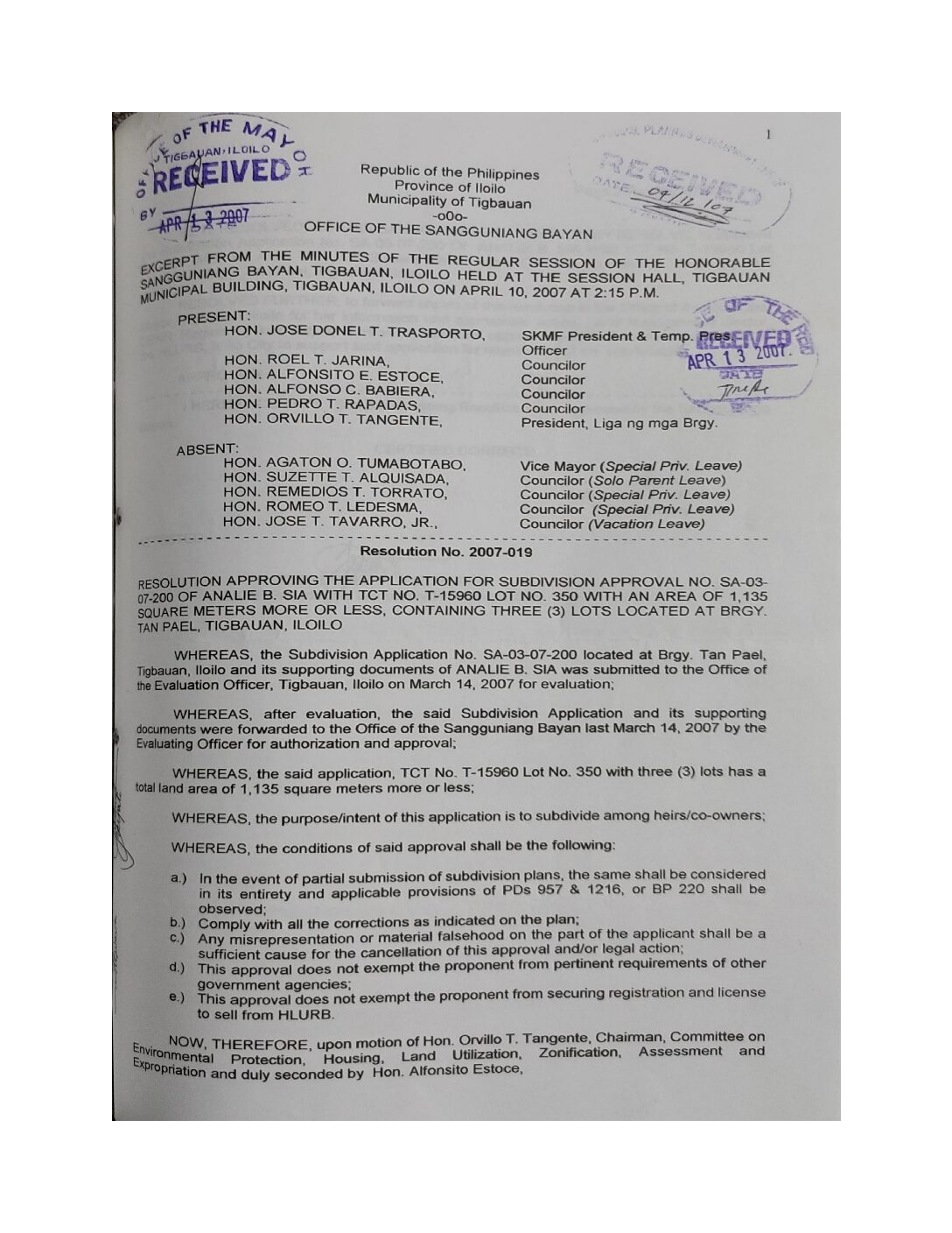 Resolution No. 2007-019