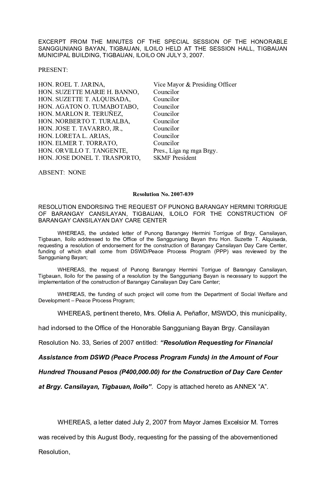 Resolution No. 2007-039