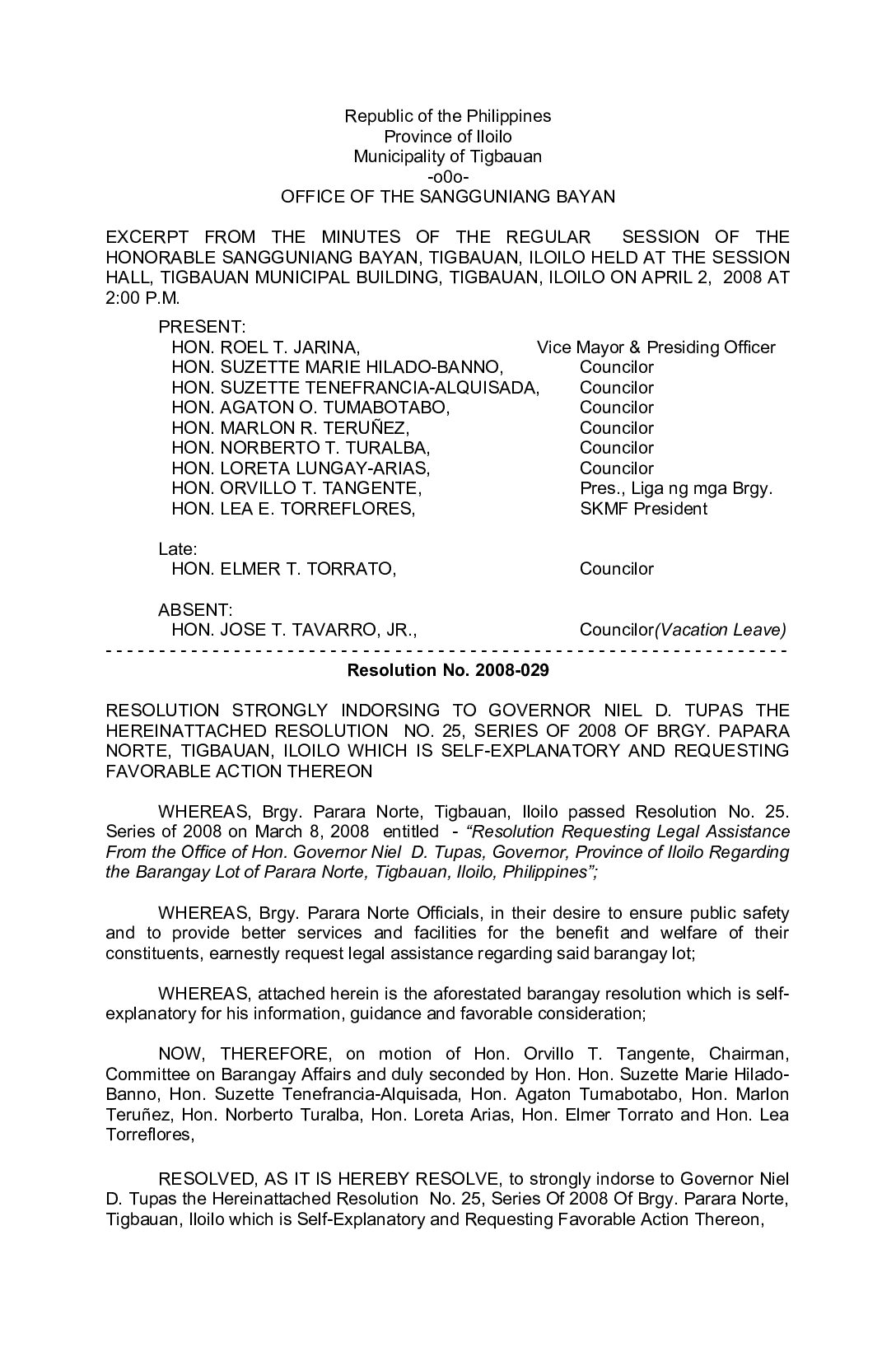 Resolution No. 2008-029