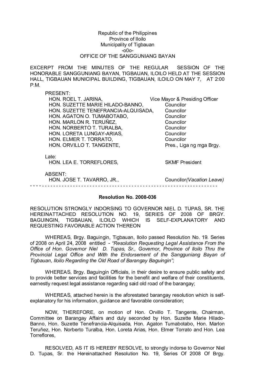 Resolution No. 2008-036