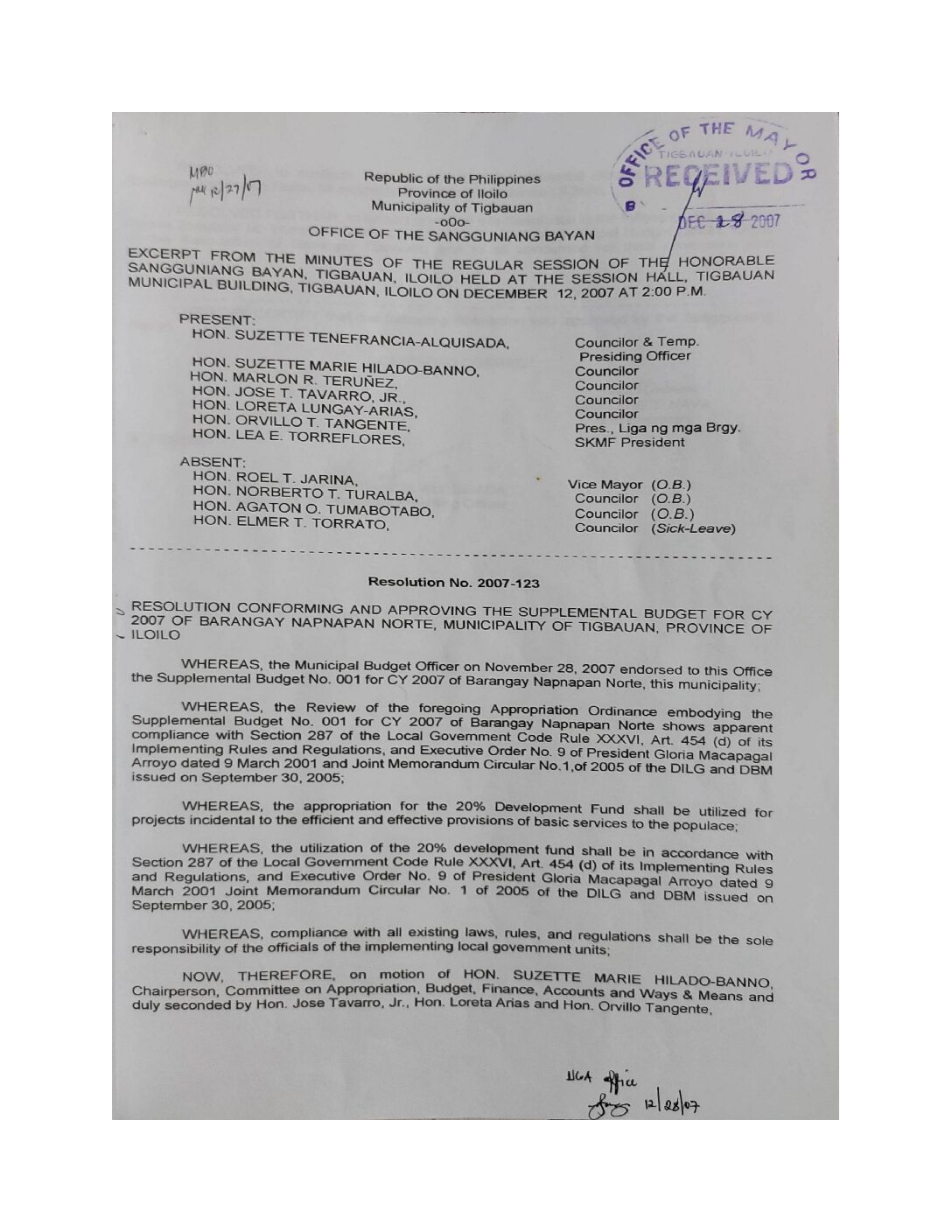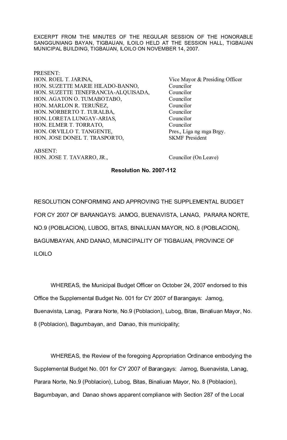 Resolution No. 2007-112