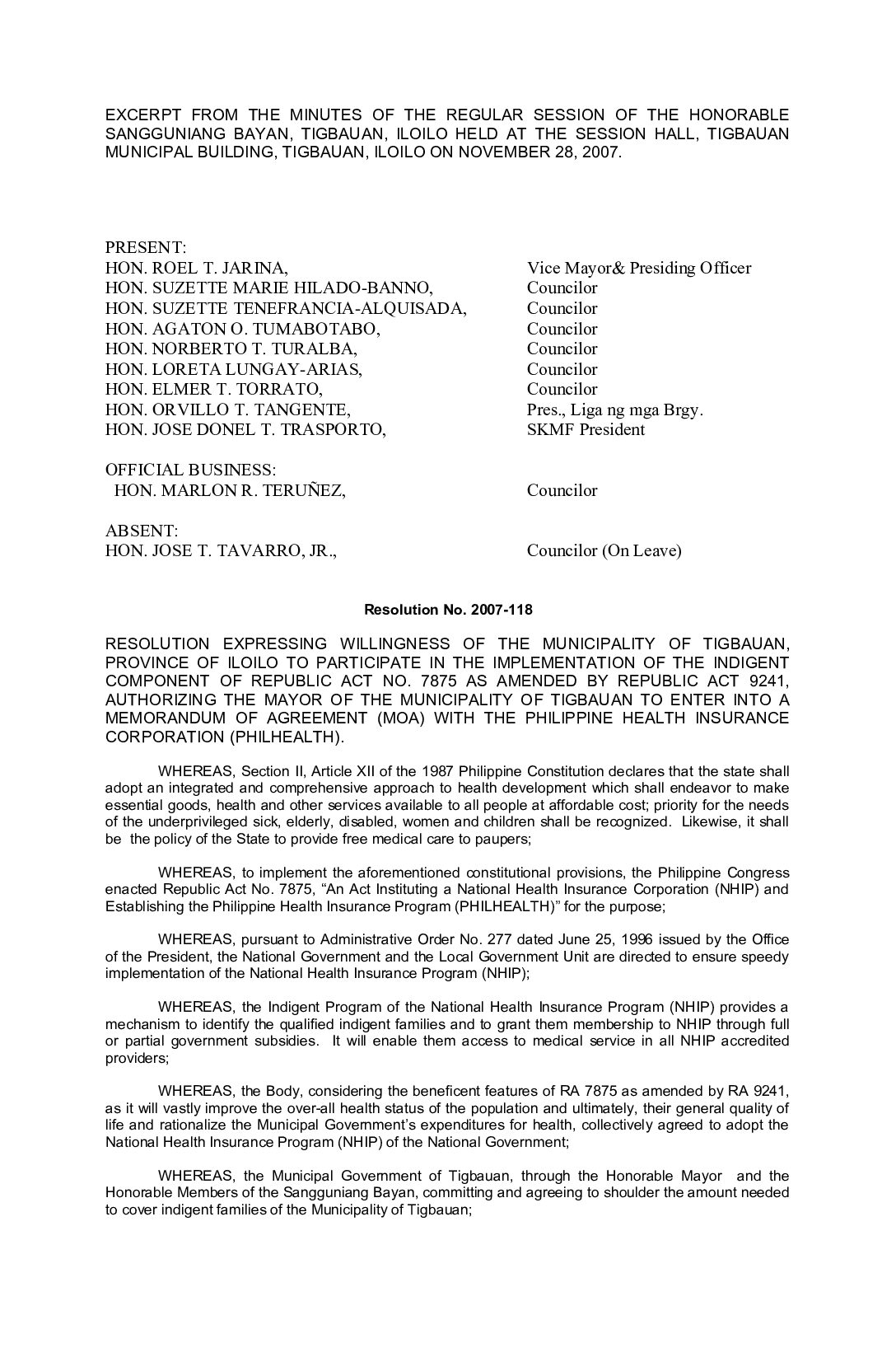Resolution No. 2007-118