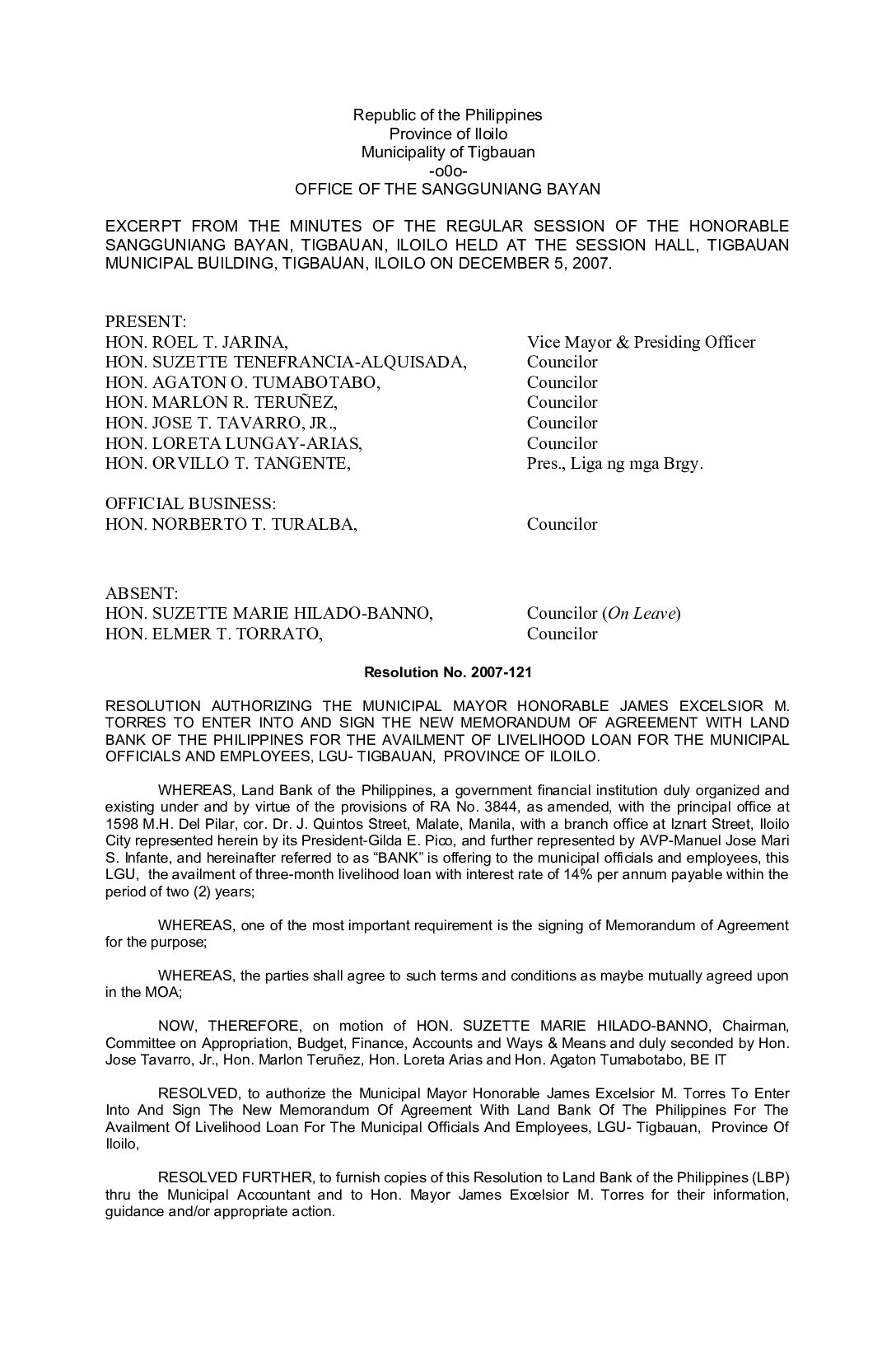 Resolution No. 2007-121