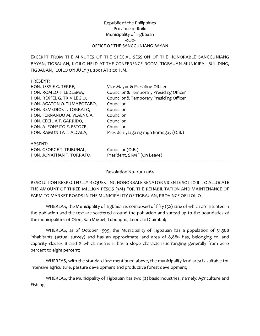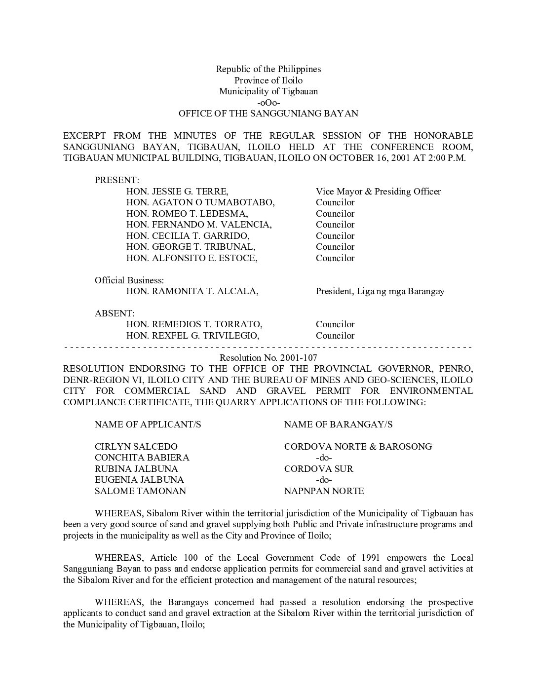 Resolution No. 2001-107