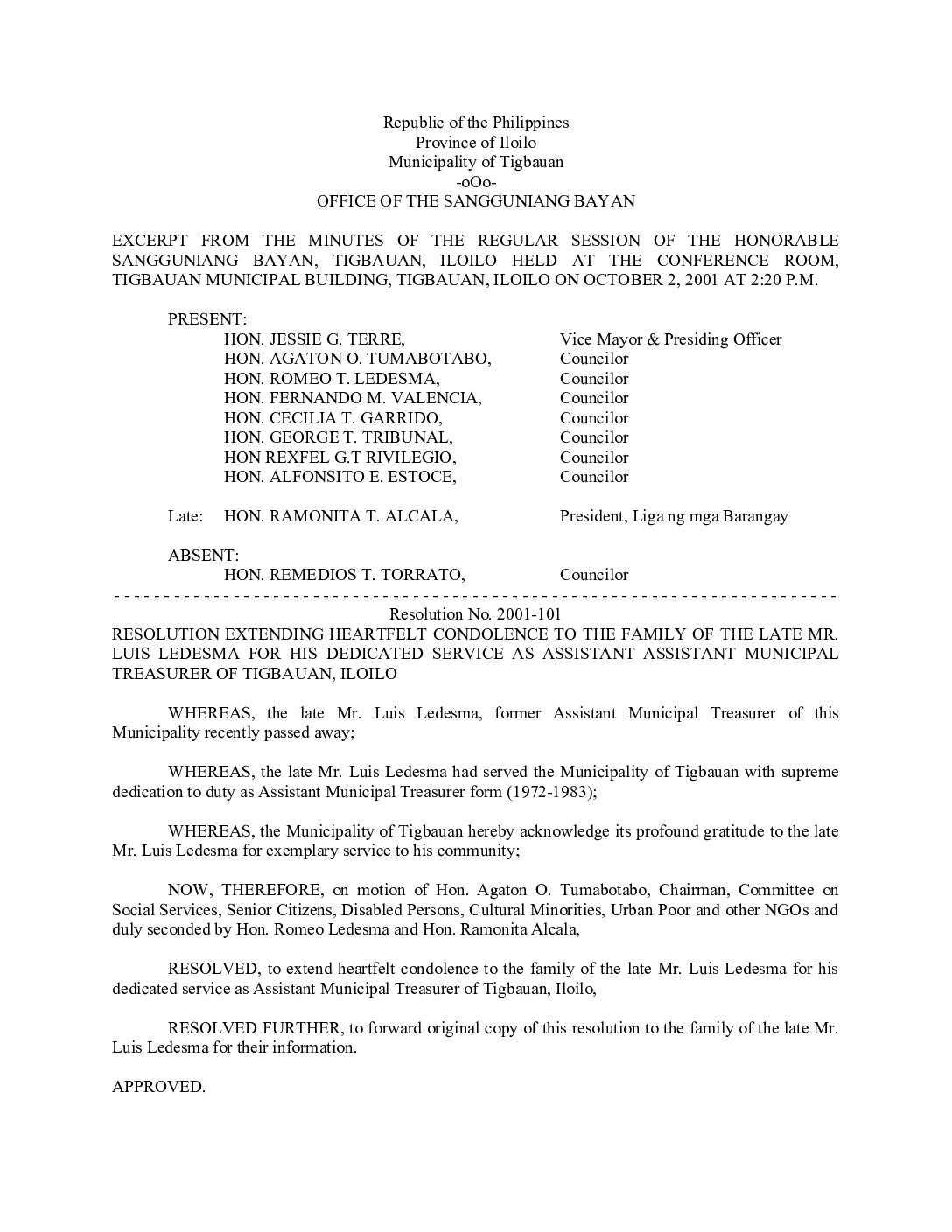 Resolution No. 2001-101