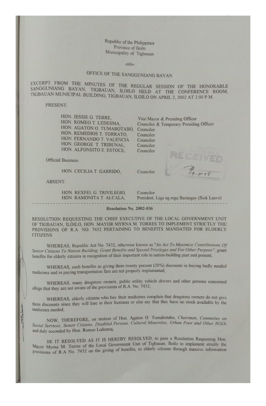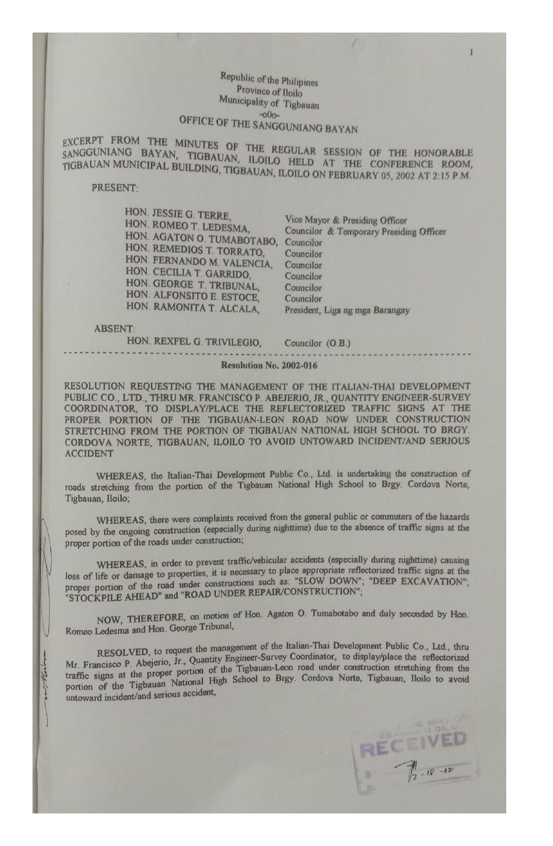 Resolution No. 2002-016