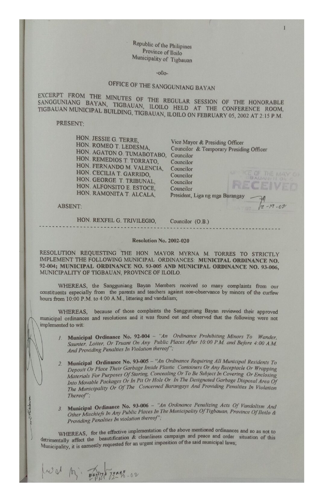 Resolution No. 2002-020