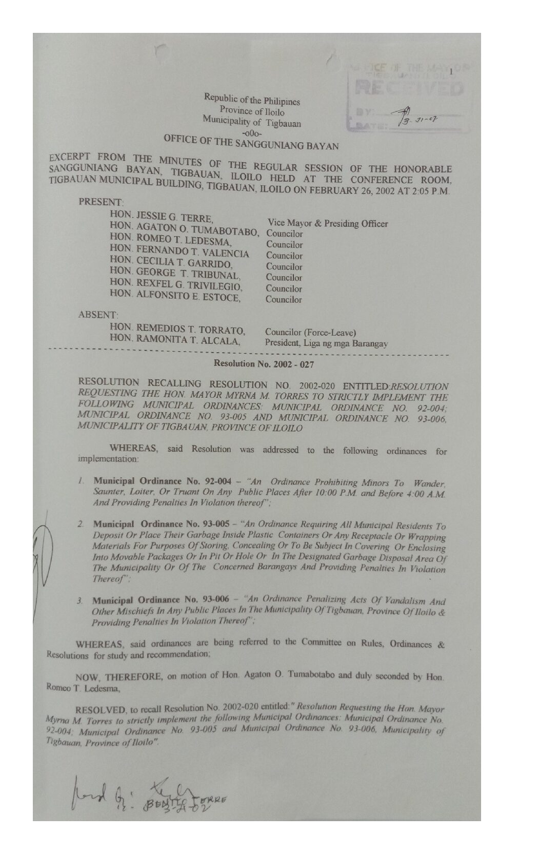 Resolution No. 2002-027
