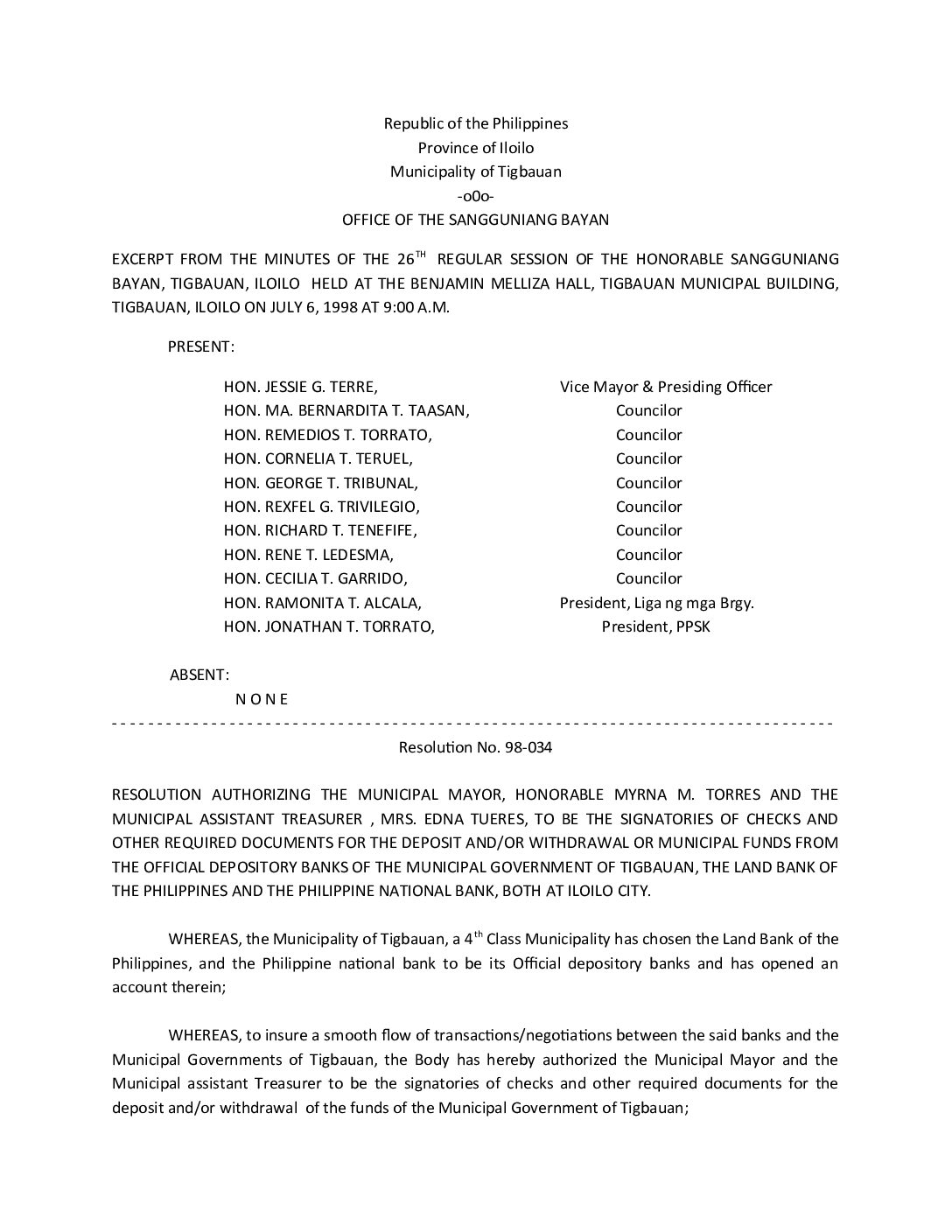 Resolution No. 98-034