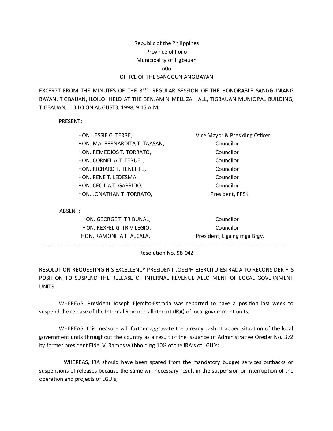 Resolution No. 98-042