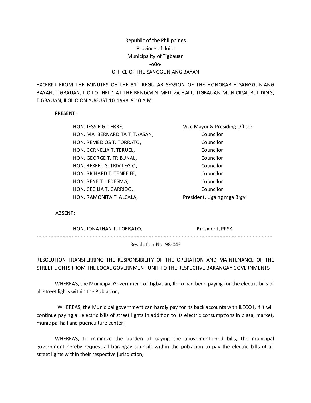 Resolution No. 98-043