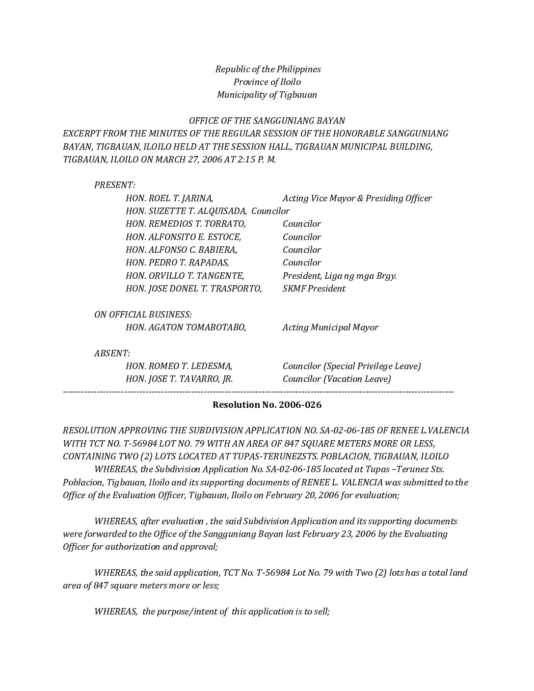 Resolution No. 2006-026
