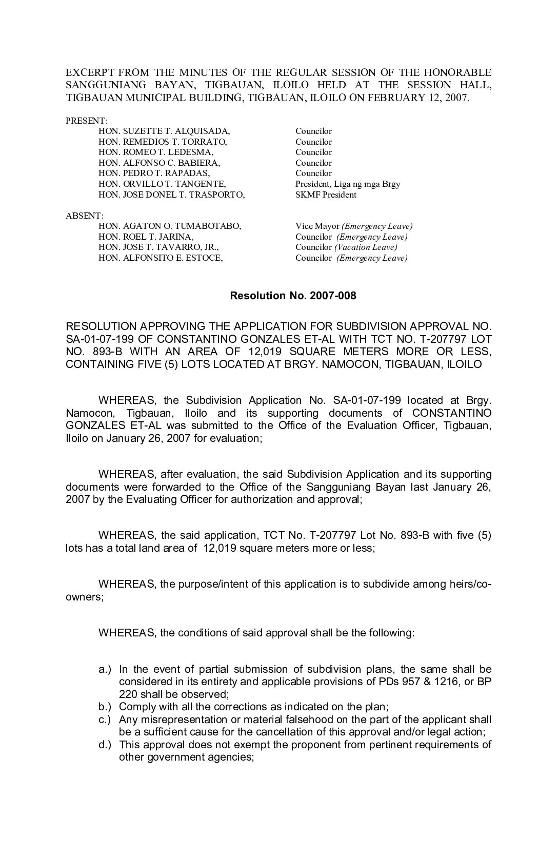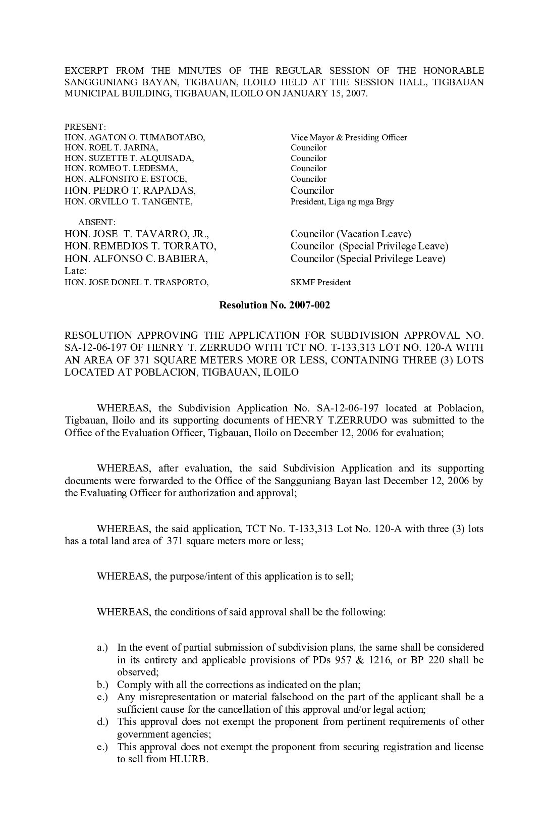Resolution No. 2007-002