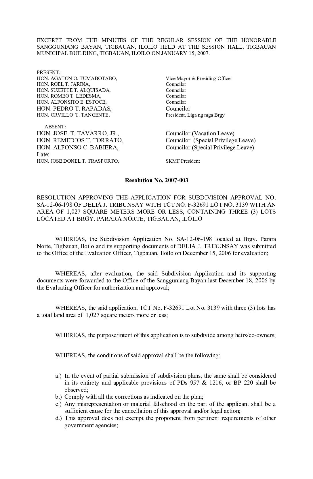 Resolution No. 2007-003