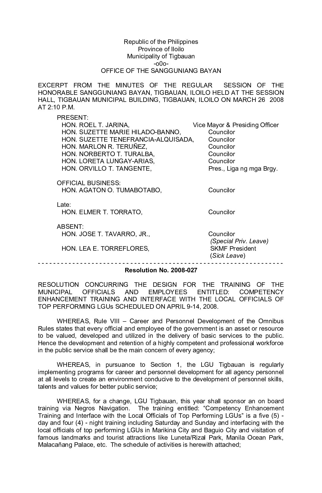 Resolution No. 2008-027