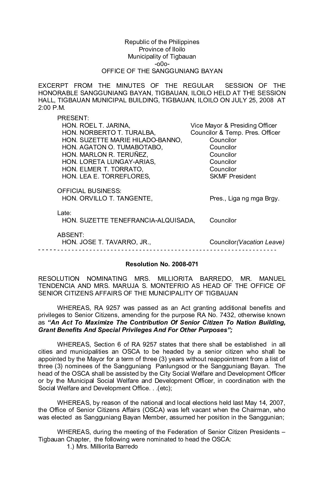 Resolution No. 2008-071