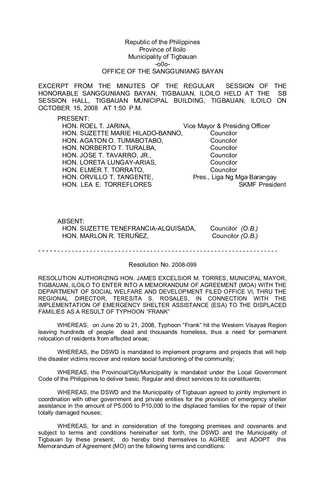 Resolution No. 2008-099