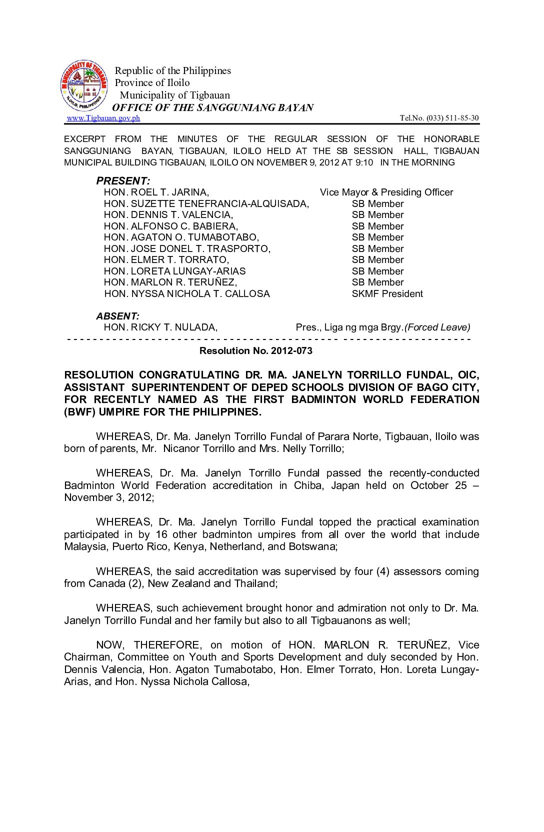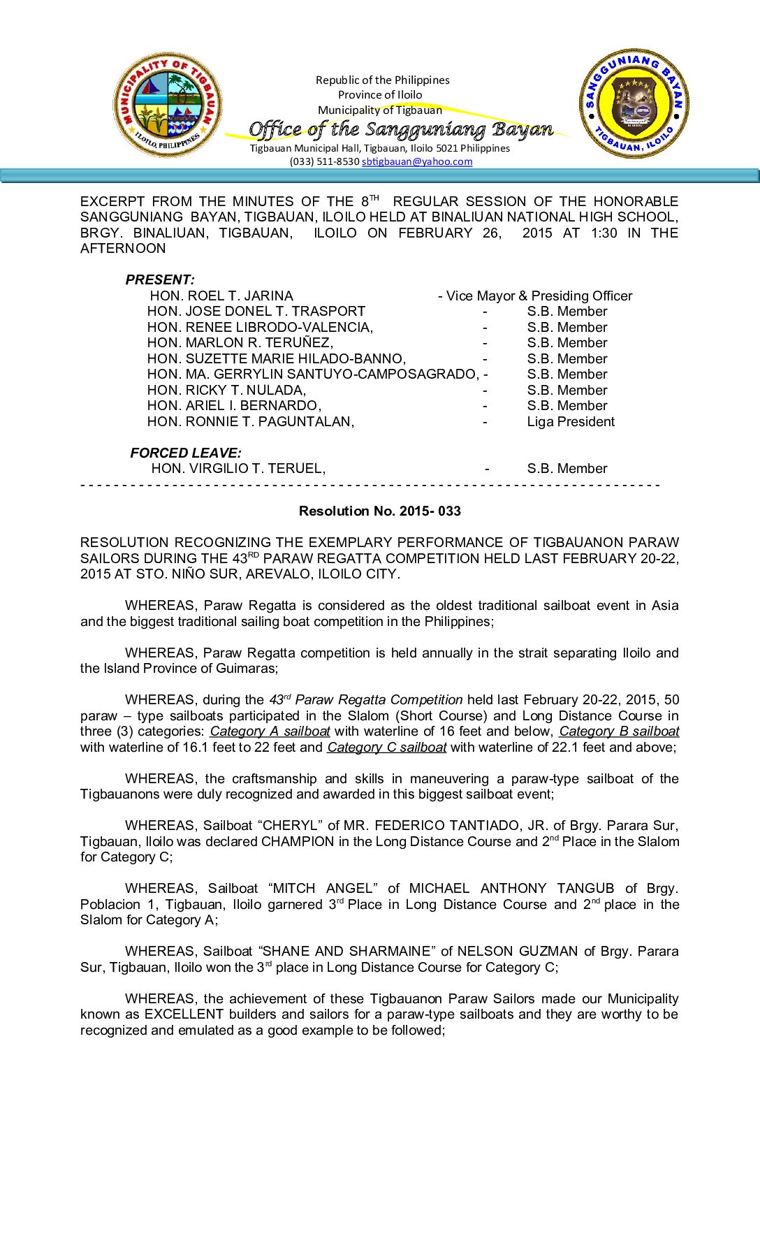 Resolution No. 2015-033