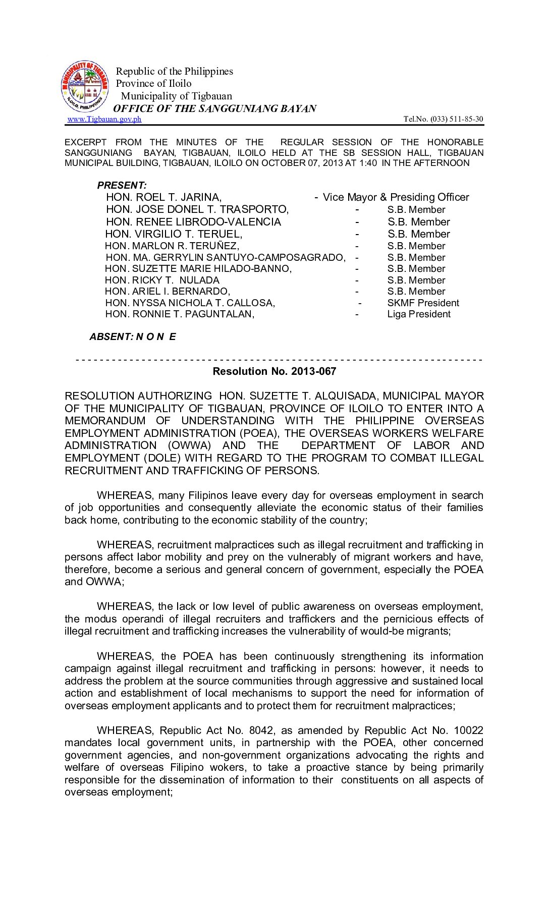 Resolution No. 2013-067