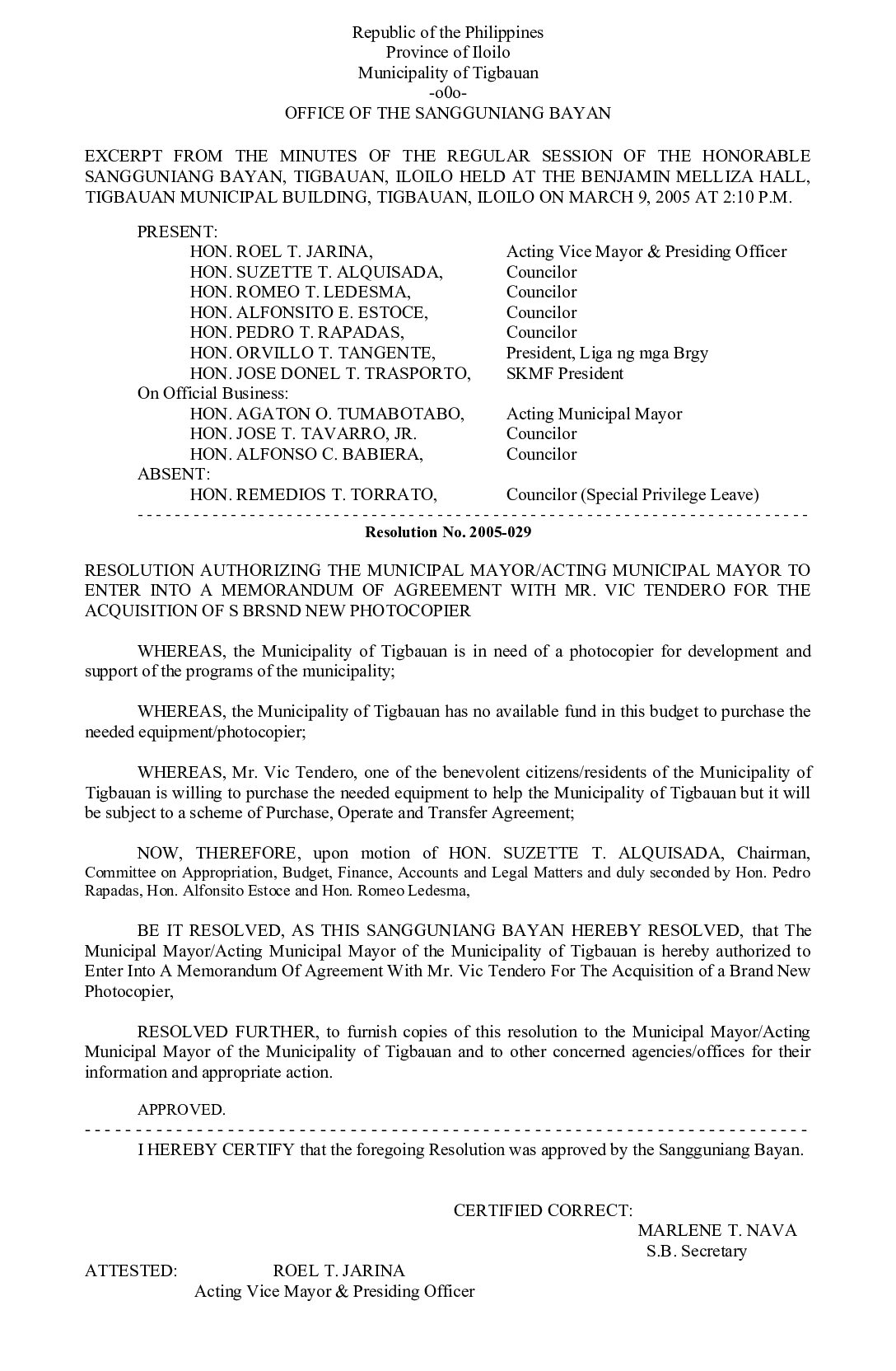 Resolution No. 2005-029