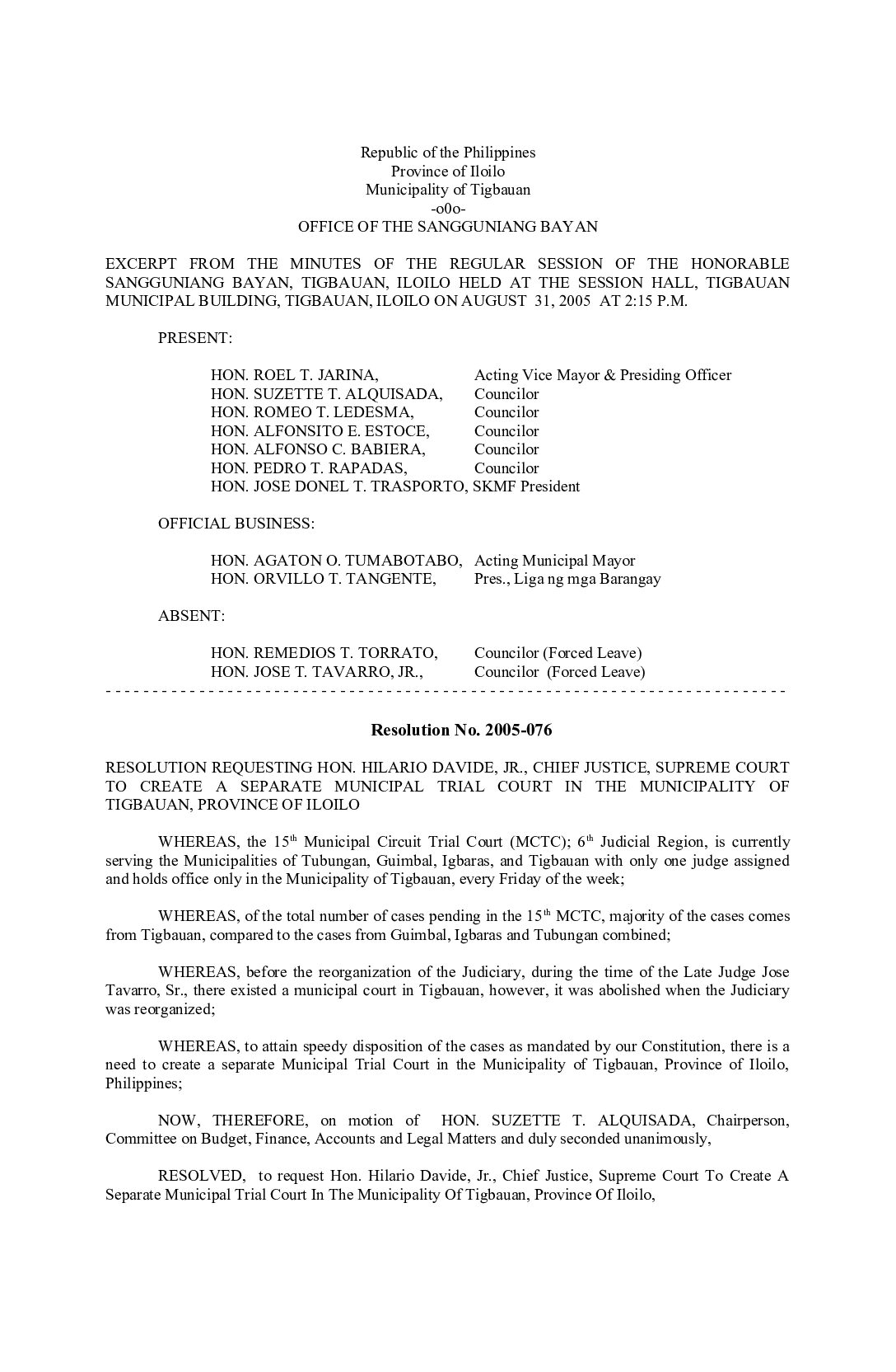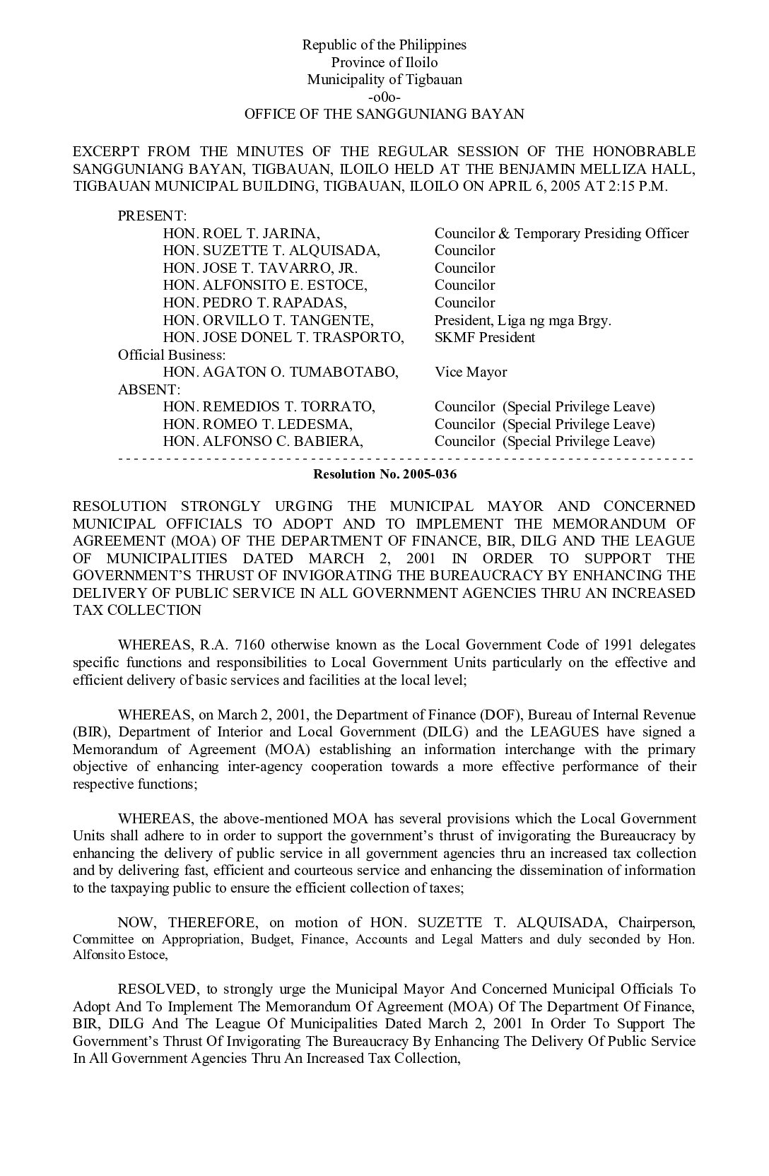 Resolution No. 2005-036
