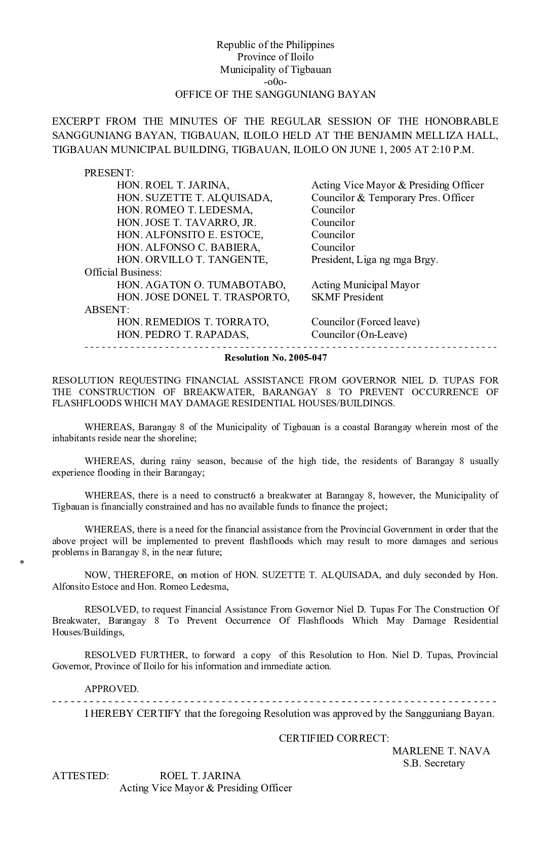 Resolution No. 2005-047