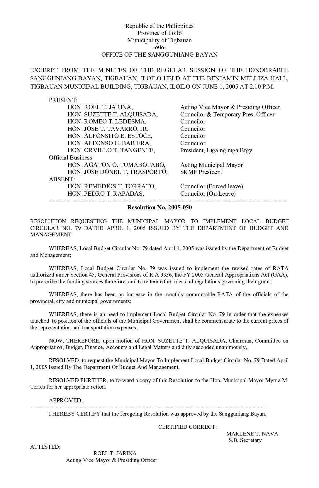 Resolution No. 2005-050