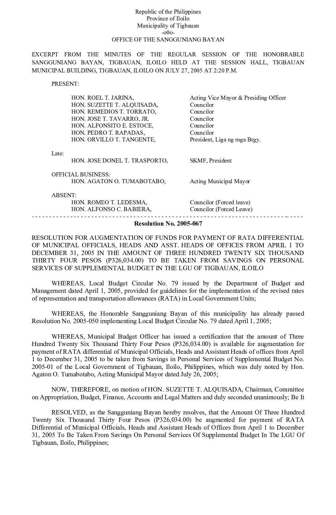 Resolution No. 2005-067