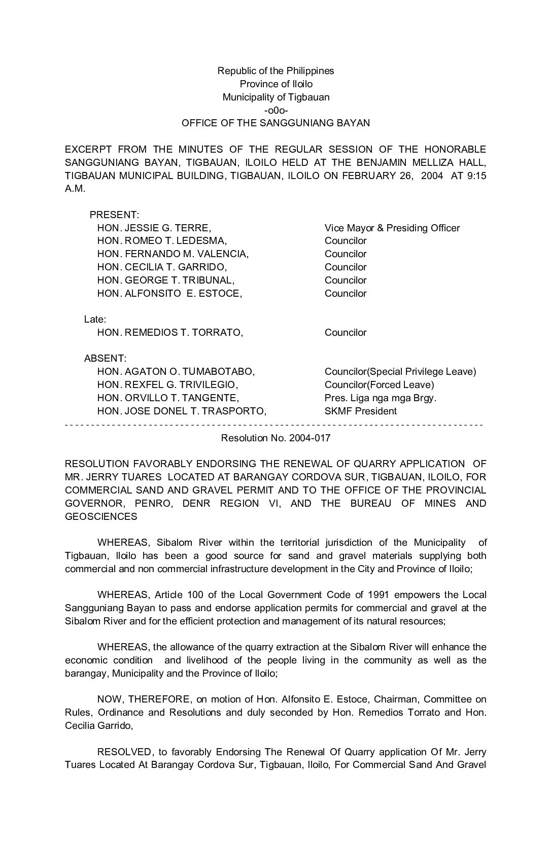 Resolution No. 2004-017
