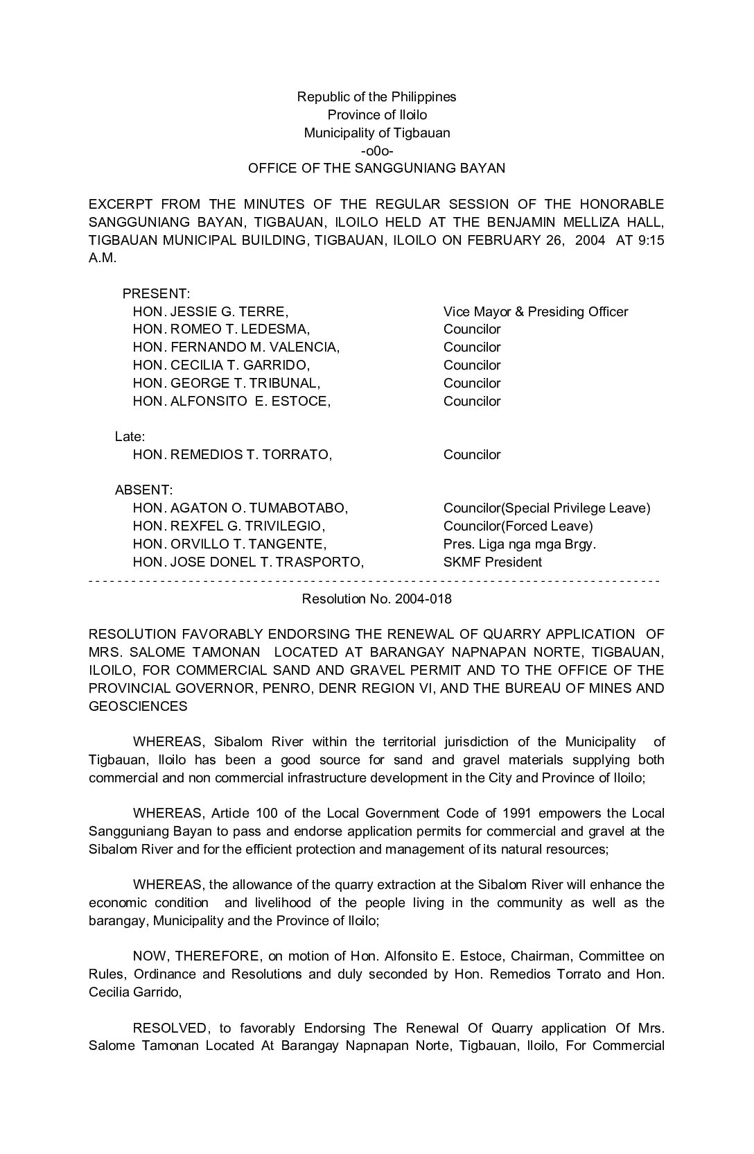 Resolution No. 2004-018