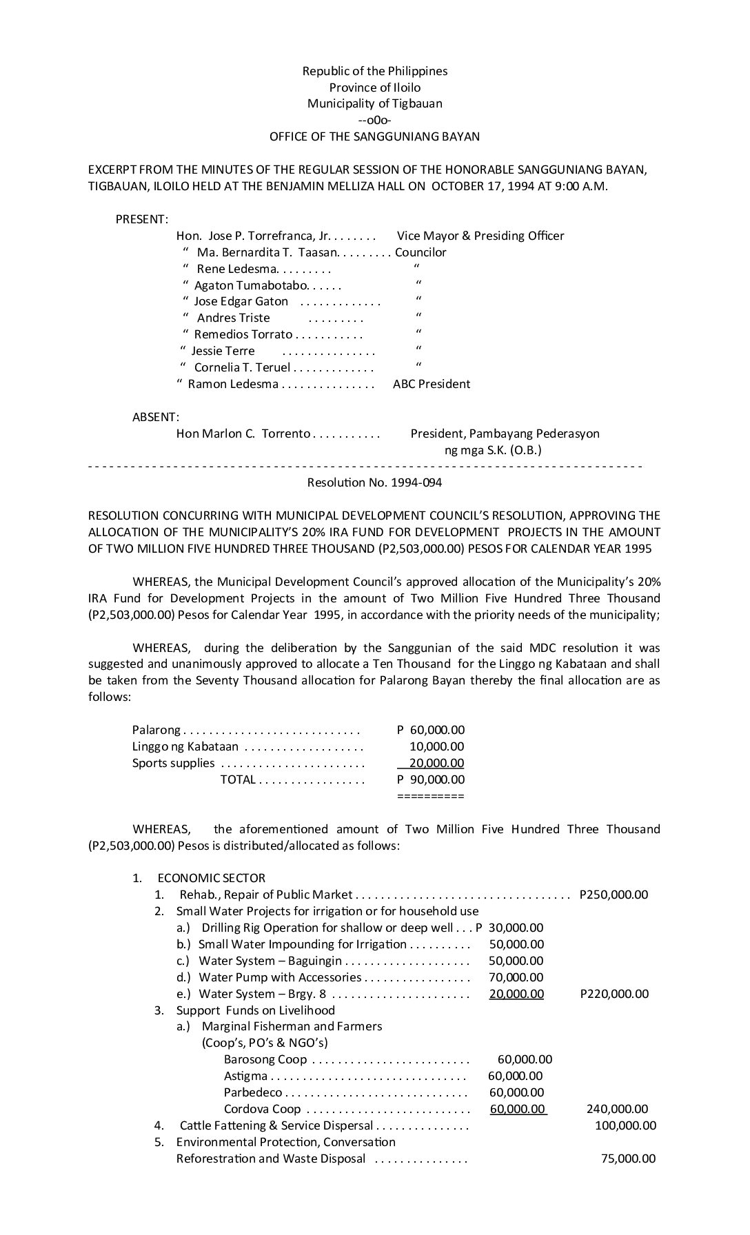 Resolution No. 94-094
