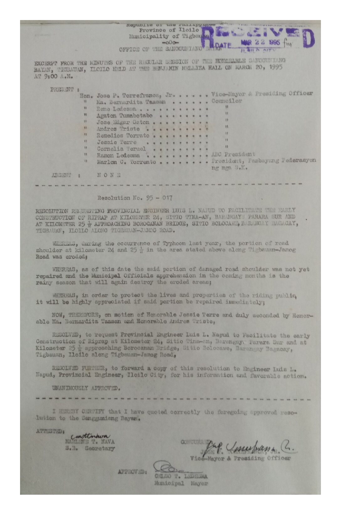 Resolution No. 95-017