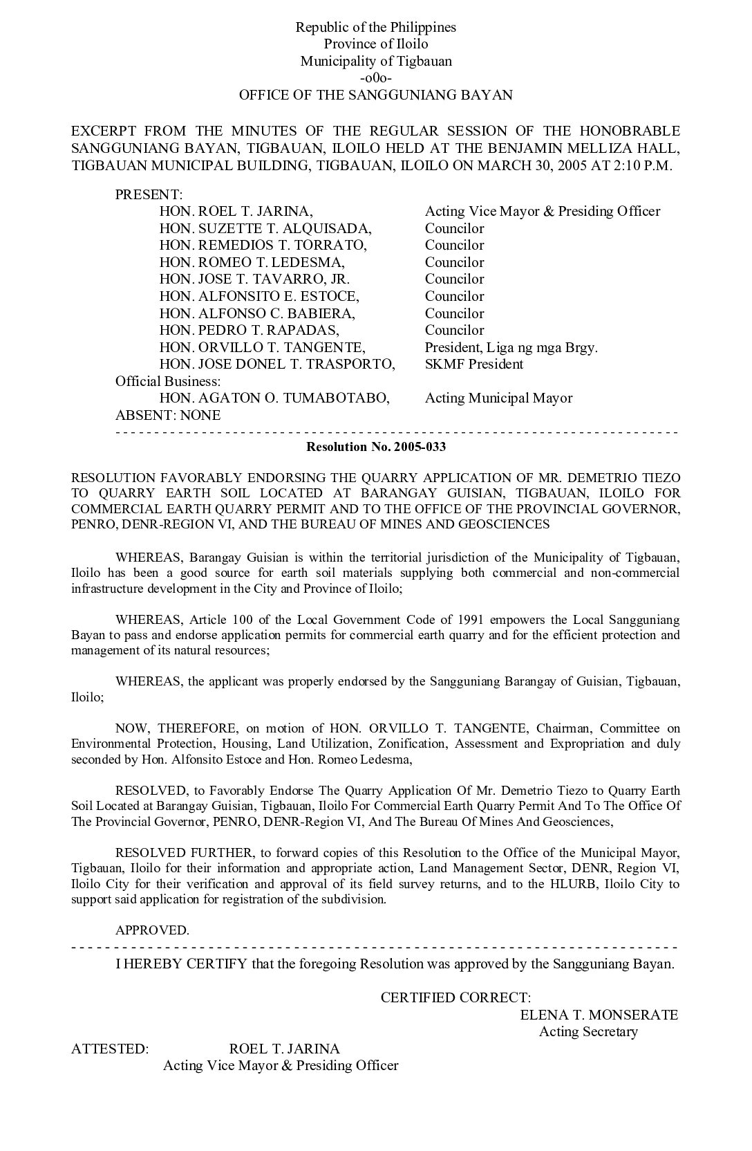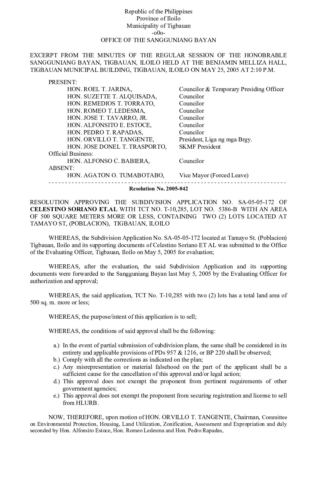 Resolution No. 2005-042